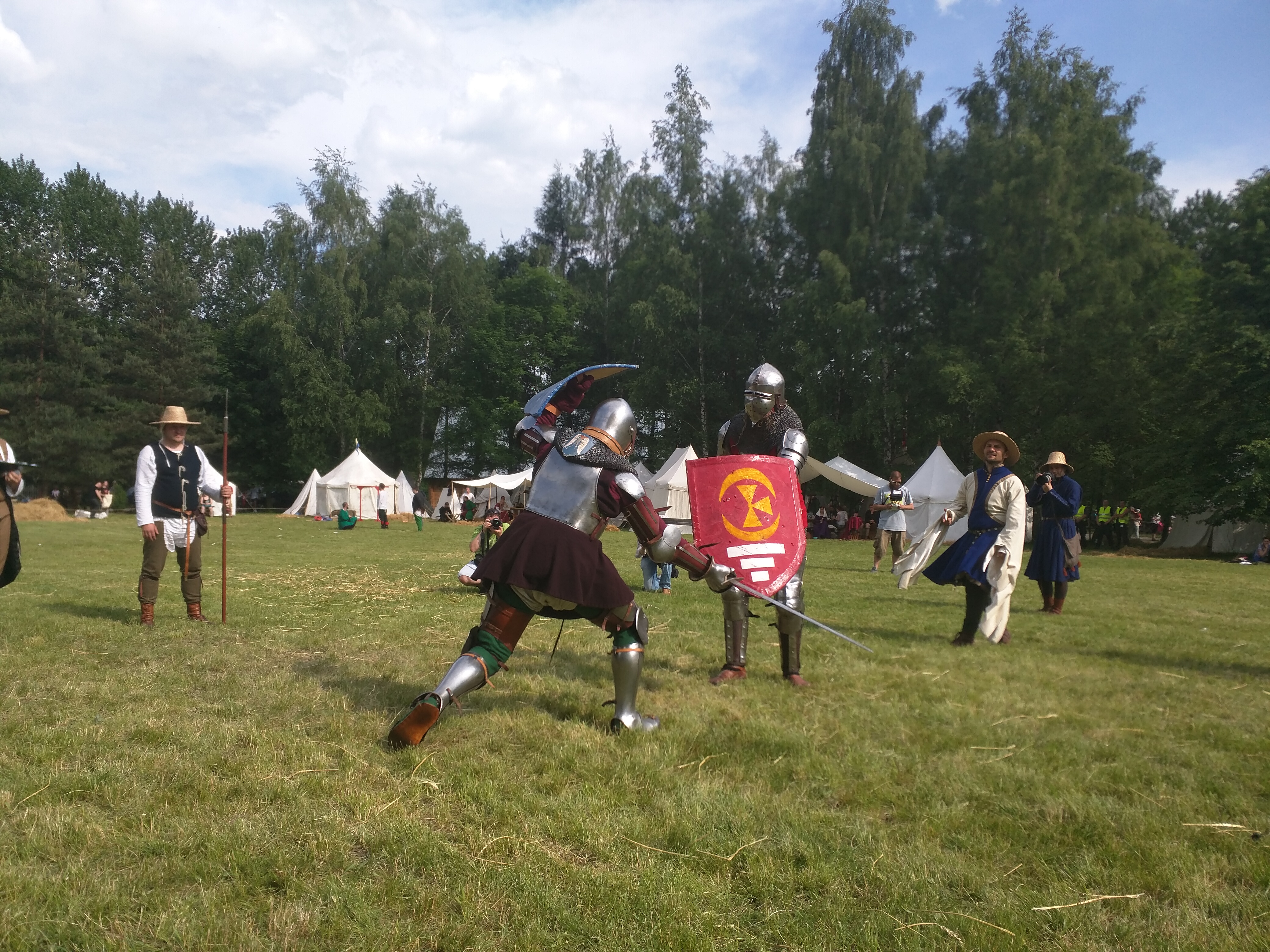 Przyrządziliśmy pyszne śniadanko i zaczęliśmy szykować naszego fightera na wielki finał. Ktoś obcy, kto by zobaczył Bartka wracającego o świcie do namiotu – rzekłby nie da rady, my wiedzieliśmy że da… i dał !!! Bardzo szybko, uporał się z dwoma rywalami i walczył o pierwsze miejsce z Piotrem Krigerem , po zaciętej i wyrównanej walce, której finał zwieńczyć musiała dogrywka, minimalnie lepszy był Piotr, a Bartosz zajął drugie miejsce ! – Oczywiście był to kolejny powód do hucznego świętowania (przyp. red. „Węże słyną z nieustającego świętowania i nie wiedzą co to umiar i zmęczenie”). Po turnieju wzięliśmy udział w bitwie z bardzo ciekawym scenariuszem „Capture the flag” , Tubiś ruszył jako zdobywający obcą flagę ciężkozbrojny, a Leon z Kafarem jako lekki zwiad stoczyli straszliwą walkę na pomidory, snopki siana, ogryzki, dwuręczne topory obsługiwane przez dzieci w trybie „berserk”… Ogółem było dużo śmiechu, walki i dobrej zabawy.