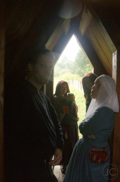 Nasza reprezentacja miała też po raz pierwszy do czynienia ze średniowiecznym larpem w praktyce. Otóż, do wioski przybyło tylu gości, że rozpętała się trwająca kilka dni intryga, zapoczątkowana morderstwem w podejrzanych okolicznościach. Gdy Wielki Inkwizytor już chciał skazać na śmierć oskarżoną o czary karczmarkę, ocaliliśmy ją błagając o próbę z Biblią. Potem zaś rozpoczęliśmy mrówczą działalność śledczą, usiłując jakoś wytłumaczyć wszystkie przedziwne zdarzenia.
