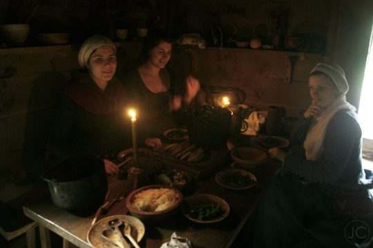 Duńską pogodę najlepiej można podsumować tytułem bollywoodzkiego hitu „Czasem słońce, czasem deszcz”. Nie przeszkadzało nam to jednak, bo w średniowiecznej chacie krytej strzechą mieszka się bardzo dobrze i nic nie przecieka. Budzeni przez dumne ze swej roli koguty, dni spędzaliśmy na gotowaniu wspaniałych posiłków pod dyrygującą łyżką Beaty, wędrowaniu po okolicy i poznawaniu nowych twarzy. Trwające do rana wieczory zaś spędzaliśmy w portowej tawernie, integrując się, popijając to i owo, grając w Alquerque i Filomenę.
