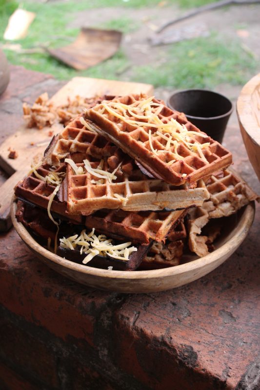 Wreszcie udało nam się natrzaskać solidną dawkę orkiszowych gofrów z białym winem i żółtym serem.