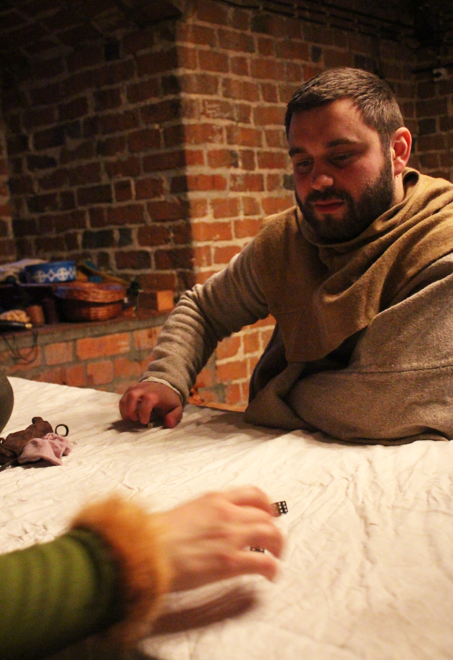 Tymczasem nie mieliśmy wiele czasu na rozterki, bo oto zaczęło się posiedzenie rady! Chwila wdrapywania się  po zamkowych schodach i oto stanęliśmy przed obliczem księcia i jego dworu. Zasłaniając się słabą znajomością polskiego i odpowiadając „egeszegedre”,  i „gulasz” na wszelkie pytania, udało nam się odsunąć podjęcie ważniejszych decyzji do czasu wieczornej uczty. Polityka taka trudna…. . Acha, naszym damom niemalże udało się doprowadzić do sądu Bożego na wódkę, między cystersem a handlarzem dewocjonaliami. Niestety Książę okazał łaskę. Smuteg.