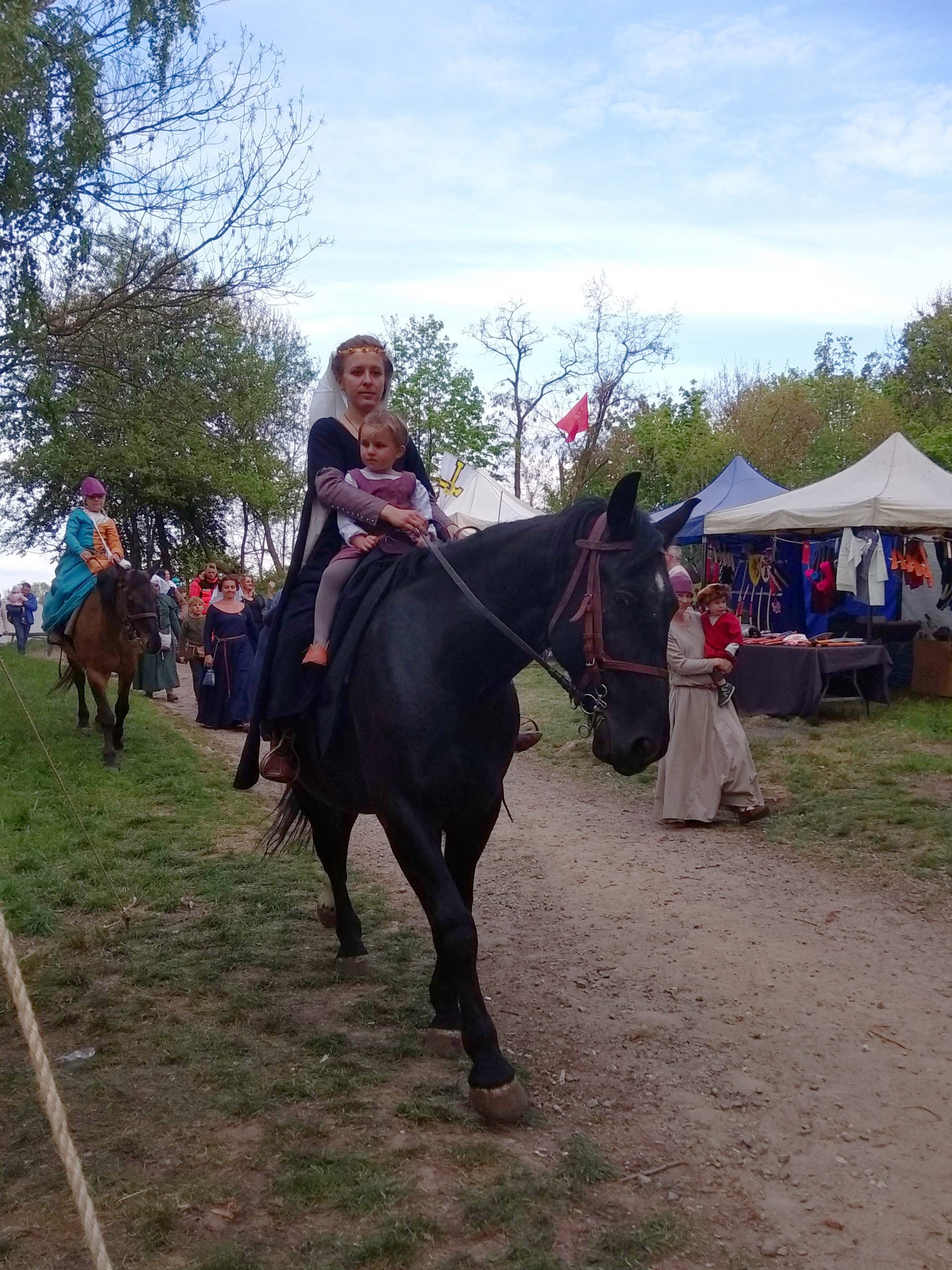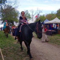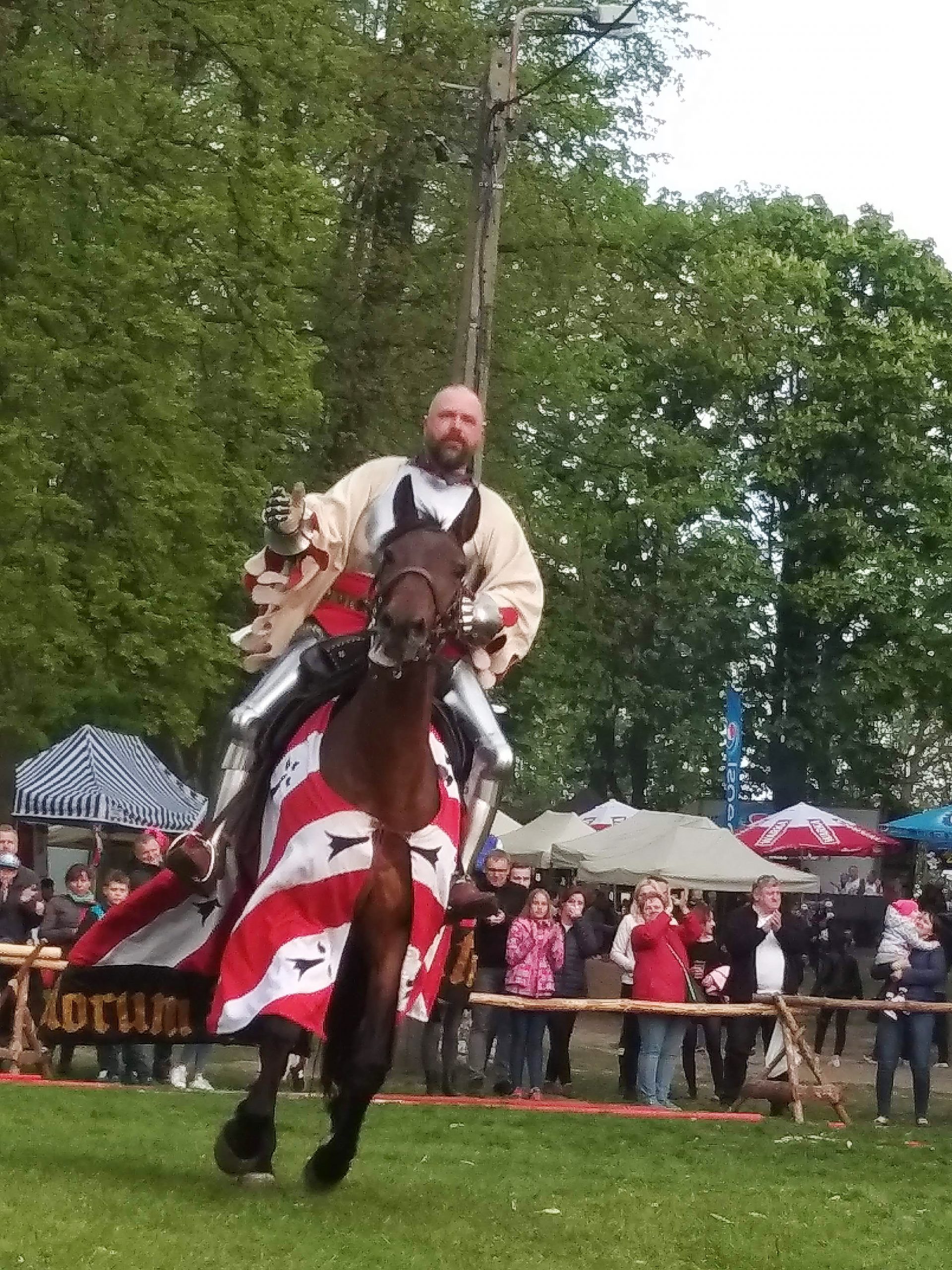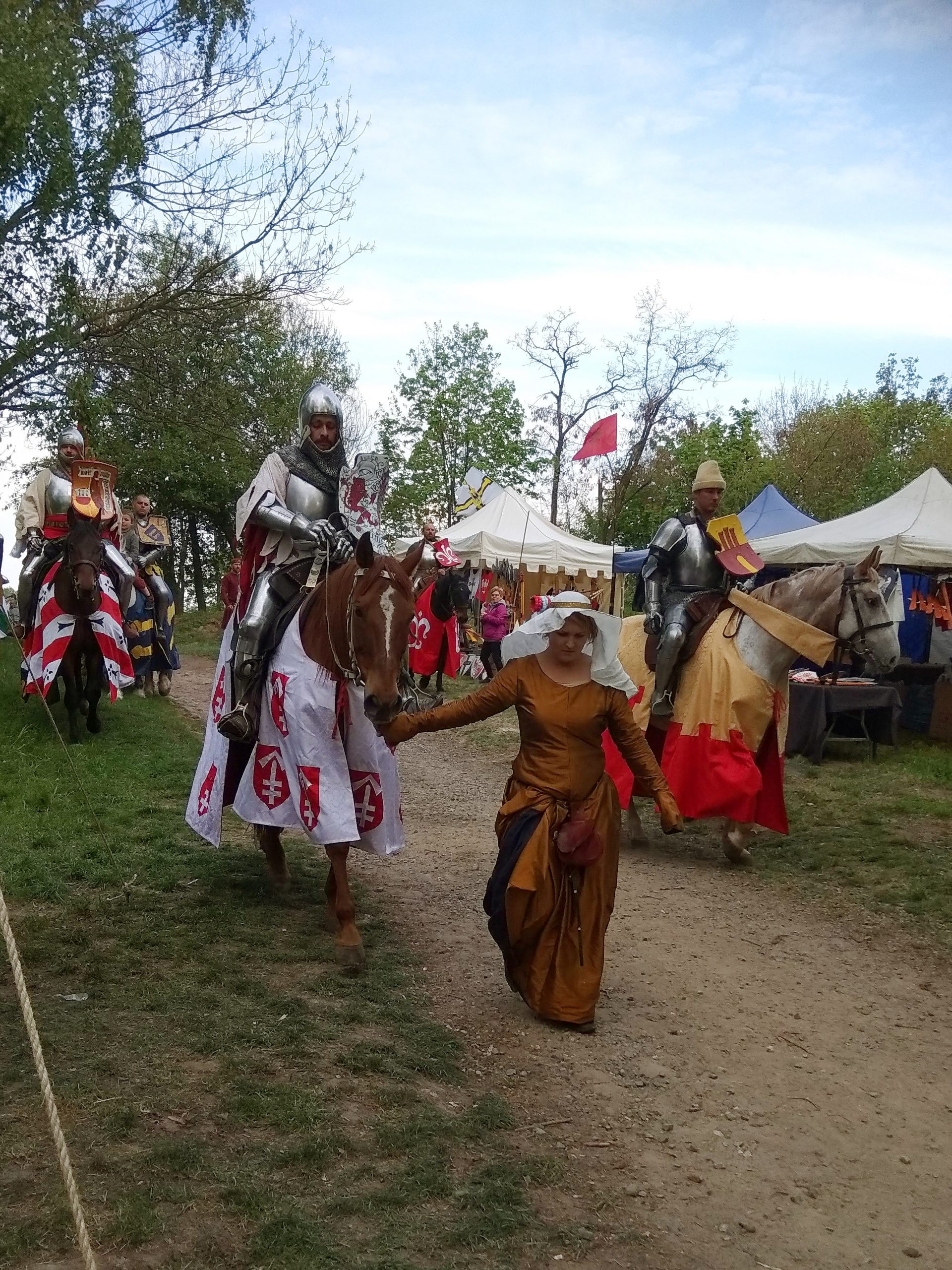 Zaczniemy tu opis od soboty, kiedy to jeszcze z Mariolą wzięłyśmy udział w warsztatach tańca prowadzonych przez Panią Małgorzatę i Mistrza Arezzo, udowadniając tym samym jak wiele talentów wężyce jeszcze ukrywają. Udało się nam nauczyć i z resztą towarzyszy zatańczyć od początku do końca piękne Amorozo – kto nie widział niech żałuje. Następnie wraz z Panią Małgorzatą i mistrzem Arezzo, ruszyłyśmy oglądać potyczki konne. Ach, co za widoki! Ach, co za emocje! Nic tylko mdleć na widok pięknych rycerzy, którzy zjechali się z całego królestwa, by dowieść swego męstwa… wzdych, wzdych i trzepotanie rzęs….