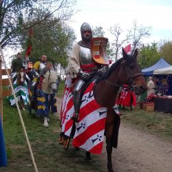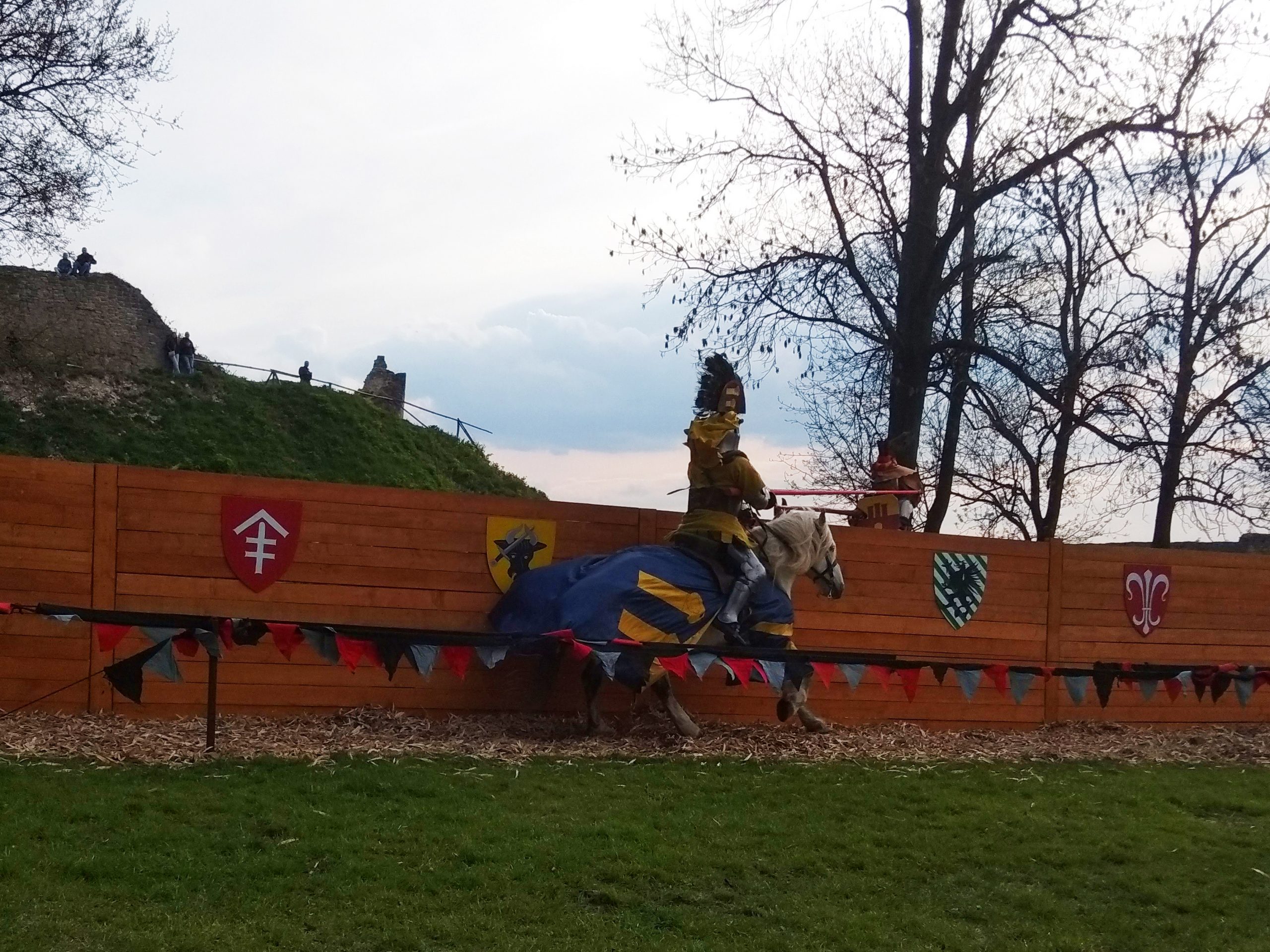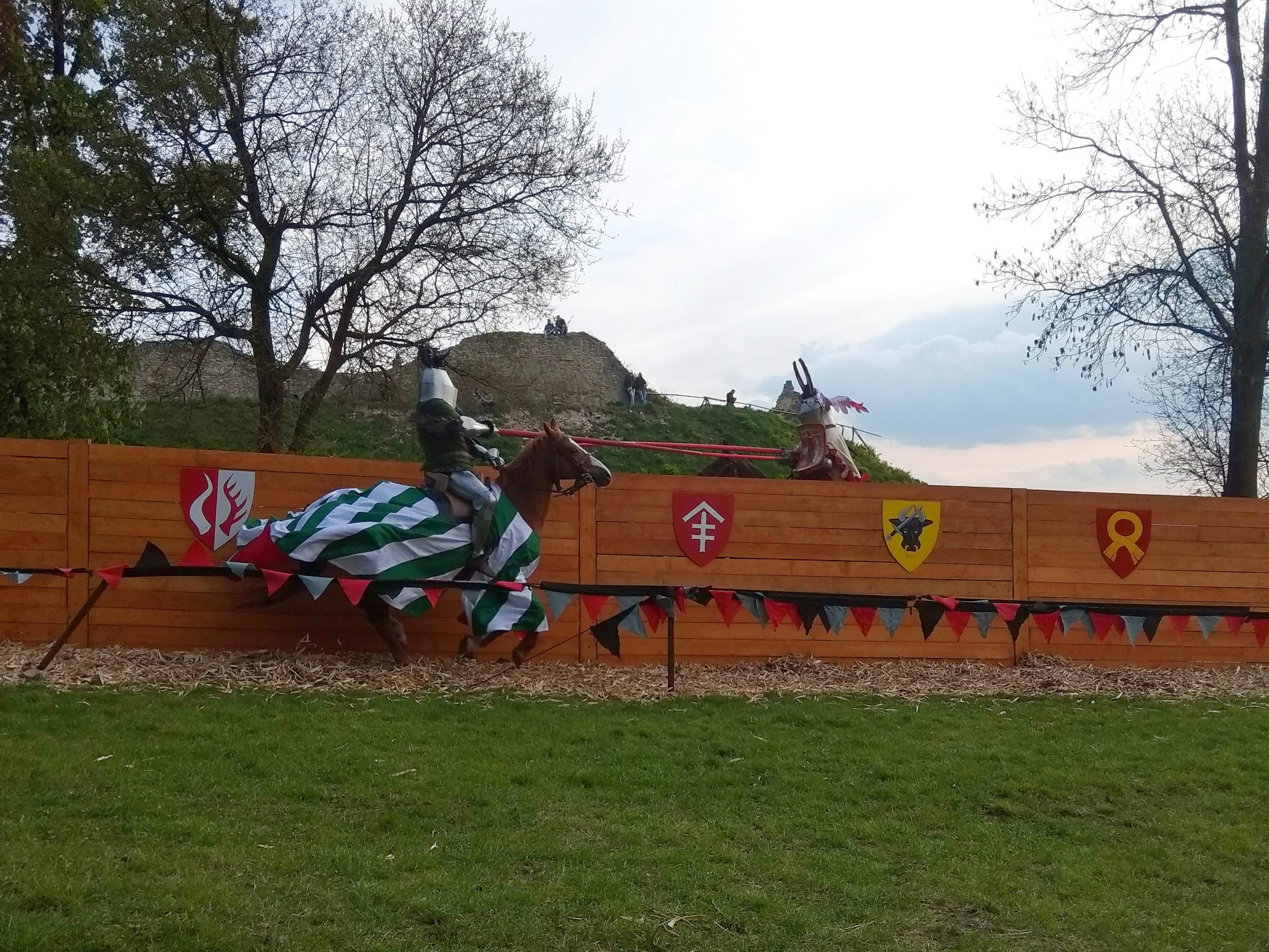 W czwartek dnia pamiętnego drugiego, miesiąca maja, pierwsi przedstawiciele wężowego bractwa pod postacią Piwła, Marioli i Tajgera, ruszyli ku kolejnej przygodzie Srebrnogrzywym (czy jak tam Piweł zwykł nazywać swój wehikuł), czyli Turniejowi w Iłży. Tam to na życzenie łaskawie nam panującej pary Królewskiej kwiat rycerstwa miał się potykać w klimacie legend arturiańskich. W czasie swej podróży nie napotkali przeszkód, jedynie w trakcie postoju w lesie, Piweł spłoszył sarenki, które uciekły hen niosąc wieść, że Wężę nadciągają! Jeszcze tylko szybkie zakupy w Iłżeckim markecie i towarzystwo było już gotowe do turniejowania. Należy wspomnieć pyszne kanapki ze schabowym, które Mama Piwła zapakowała rycerzowi w juki, co by pokrzepiły ciała i umysły biesiadujących. Jeszcze tylko wjechać na górę, otrzeć trochę samochód od spodu o wystające kamienie i już można się rozkładać z obozem. Nasze wężowisko rozstawiliśmy z pozostałymi członkami bractwa, którzy powoli się pozpełzali z okolic (Julka, Kici i Uruk), oraz z zaprzyjaźnionymi przedstawicielami Pocztu Wukry- Panią Małgorzatą, Mistrzem Arezzo i Panem Bazylim, którym się zalęgliśmy przy stole. Jak zwykle Tajger nie był pochopny w działaniach, wygrywając tym samym honorową nagrodę dla tego kto rozstawi się z namiotem jako ostatni.