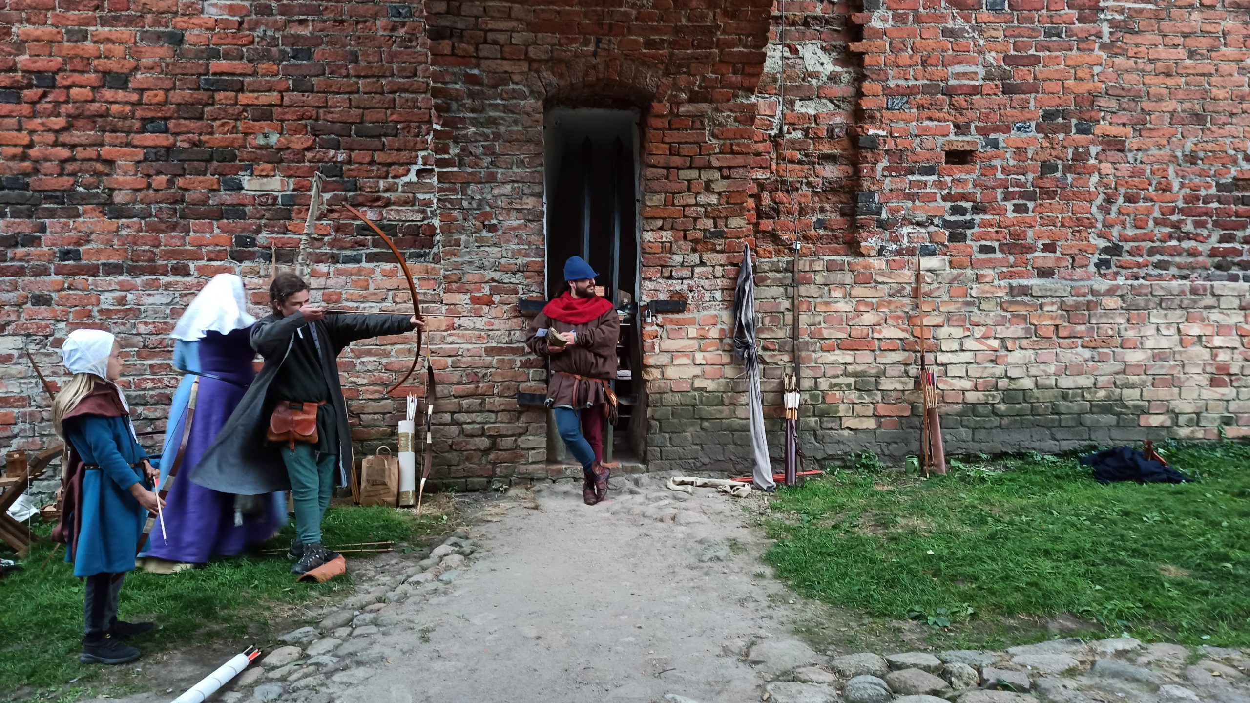 Po harcach i tańcach nastąpiła przerwa na obiad, a po obiedzie miały miejsce warsztaty z kaligrafii oraz turniej łuczniczy. Ten drugi, na przekór tradycji, odbył się zgodnie z planowaną godziną i zakończył przed zachodem słońca mimo tego, że pogoda płatała figle i trochę popadało (jednak trzeba było wypić jeszcze jeden szocik za słoneczko 😉 !). Do udziału w rywalizacji zgłosiło się wielu śmiałków z całego kraju! Zmierzyli się ze sobą w trzech konkurencjach, które wyłoniły zwycięzcę – Tomka T.! Z niewielką różnicą punktów tuż za nim uplasował się Cichy, a ostatnie miejsce podium zajął Matthew z Ciechanowa.